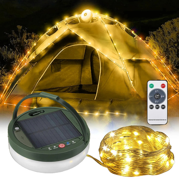 2 in1ソーラーキャンプストリングライト10m屋外USB充電式ライトリモコン付きポータブル防水懐中電灯